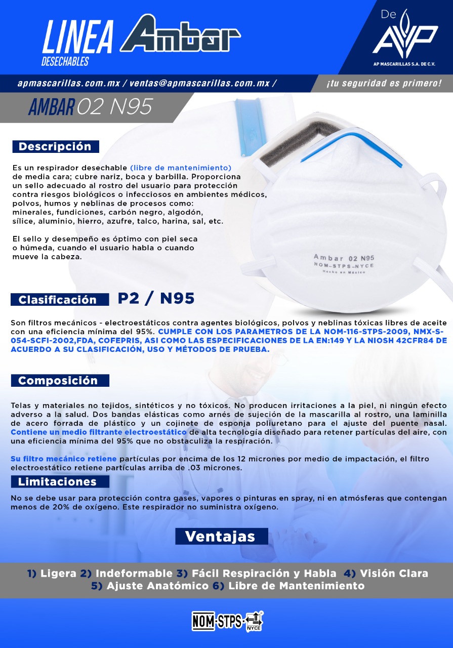 eficiencia mínima del 95% que no obstaculiza la respiración.